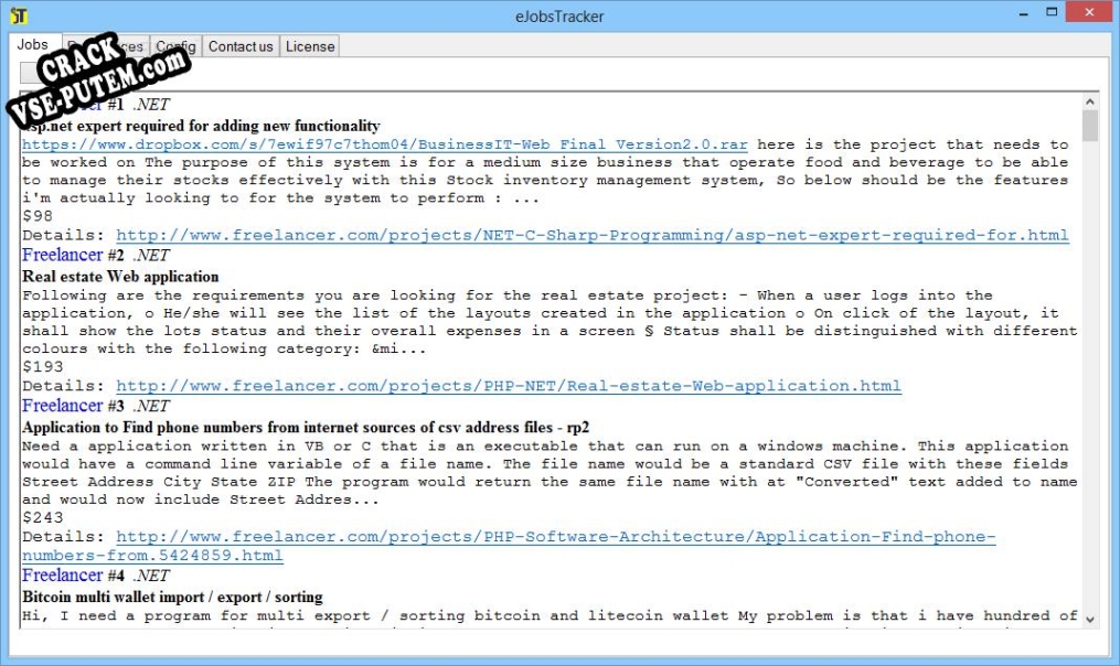 eJobsTracker is an efficient and lightweight piece of software developed to provide freelancers with the ability to constantly be on the lookout for new jobs that are posted in the online environment.
