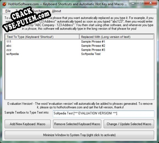 Представляем вашему вниманию рабочий ключ для последней версии программы (1.0 и выше), который вы можете скачать с нашего сайта Vse-Putem.COM совершенно бесплатно. Если вы искали актуальный и рабочий ключ для Keyboard Shortcuts and Automatic Hot Key and Macro Recorder, вы попали в правильное место. Ключи, как всегда будут уникальными и будут служить только для того, чтобы активировать программу. Более подробная информация, а также ссылка на скачивание, ниже.