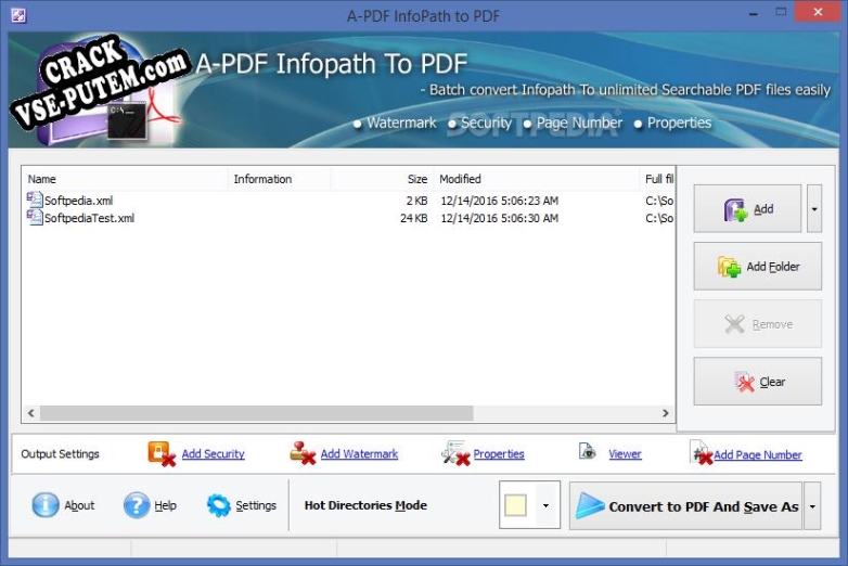 Добро пожаловать на Vse-Putem.COM! Если вы зашли на эту страницу, вы наверняка искали ключ для A-PDF InfoPath to PDF. Здесь вы можете скачать взломщик для версии программы 1.0 и выше. Более подробная информация, а также ссылка на скачивание, ниже.