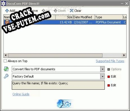 Мы загрузили этот протестированный crack для DocuCom PDF Driver. Сам ключ будет уникальным, и послужит только для активации программы. Этот crack + keygen от TLC будет работать и на более поздних версиях.