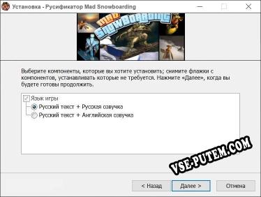 Русификатор текста для игры Mad Snowboarding (полный перевод игры)