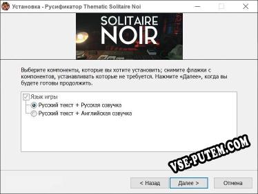 Если вы зашли на эту страницу, вы наверняка искали русификатор для Thematic Solitaire Noir. Используя русификатор к этой игре, вы сможете перевести игру на русский язык. Этот русификатор от AoRE будет работать и на более поздних версиях.