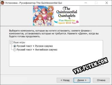Установка русификатора для игры The Quintessential Quintuplets Five Memories Spent With You: