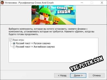4. После установки русификатора перезапустите игру Cross And Crush.