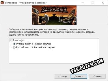 Русификатор текста для игры Sacraboar (полный перевод игры)