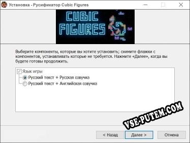 Добро пожаловать на Vse-Putem.COM! Если вы хотите играть в Cubic Figures на русском языке, то вы попали по адресу! Здесь вы можете скачать русификатор для версии игры 1.0 и выше. На этой странице представлен русификатор от автора как HoG, в ближайшее время мы добавим больше файлов для этой игры от других авторов.