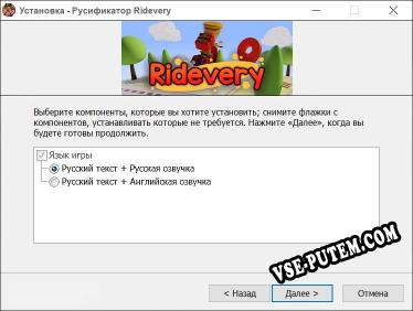 Русификатор текста для игры Ridevery (полный перевод игры)