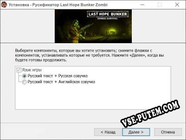 Установка русификатора для игры Last Hope Bunker Zombie Survival: