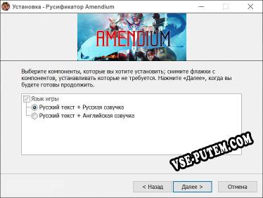 Добро пожаловать на Vse-Putem.COM! Представляем вам русификатор для игры Amendium! Здесь вы можете скачать русификатор для версии игры 1.0 и выше. Доступен русификатор от X.O.