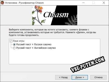 Приветствуем вас на страницах нашего сайта Vse-Putem.COM, где вы найдете все необходимые русификаторы для своих любимых игр! Если вы искали актуальный и рабочий русификатор для Chiasm, вы попали в правильное место. Русификатор позволит вам перевести игру. Этот русификатор от tPORt будет работать и на более поздних версиях.