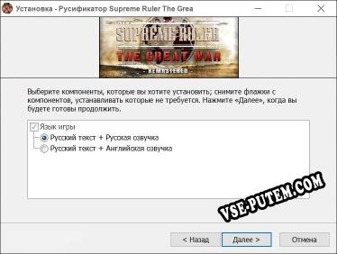 Установка русификатора для игры Supreme Ruler The Great War Remastered: