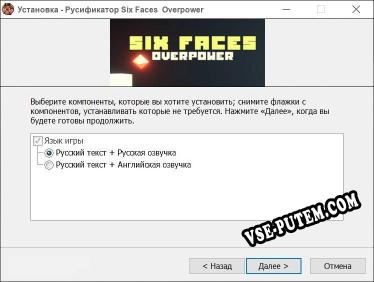 4. После установки русификатора перезапустите игру Six Faces Overpower.