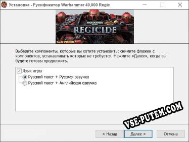 Установка русификатора для игры Warhammer 40,000 Regicide: